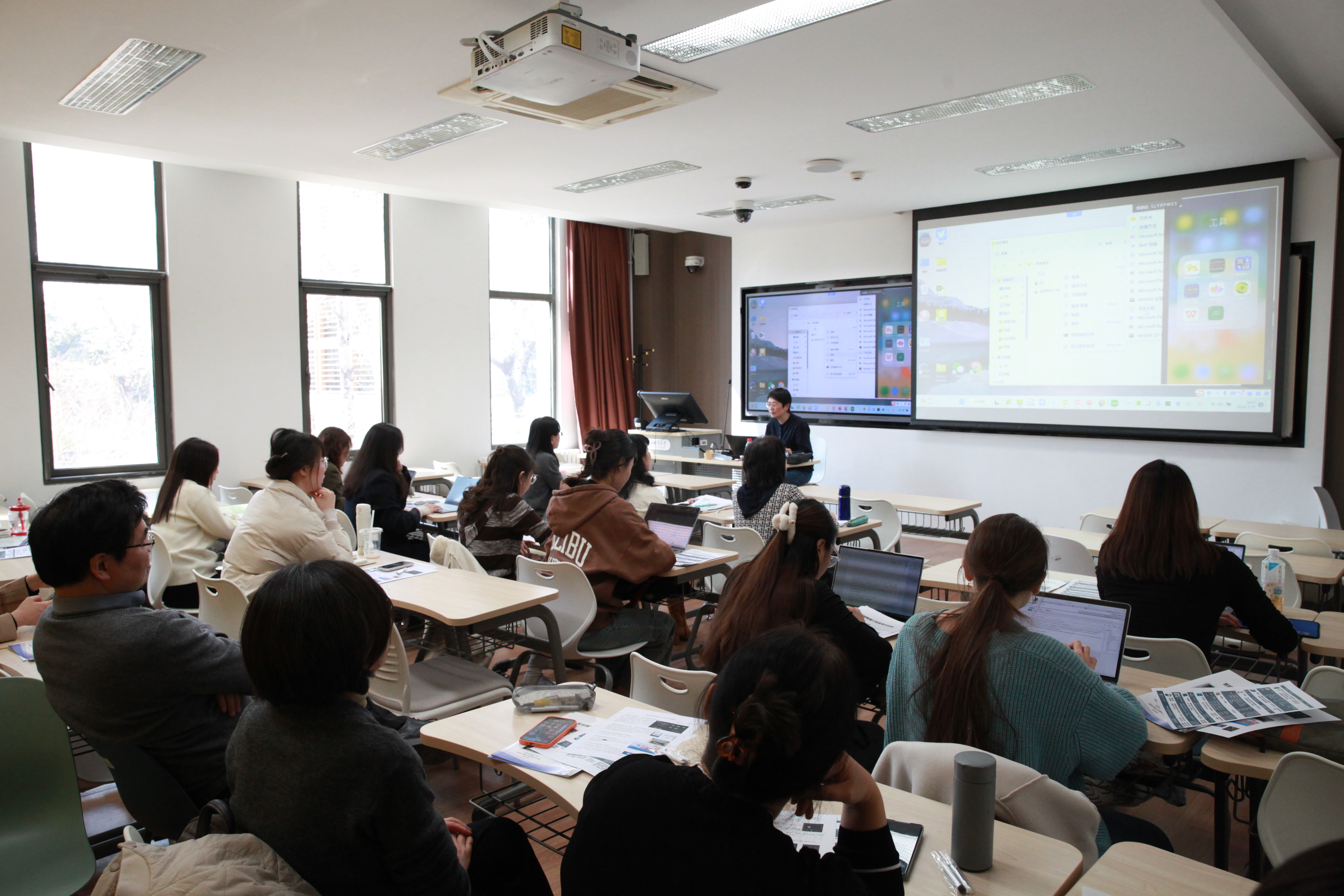 薛老师从各种实用软件以及北外云盘、Excel表格的使用等方面进行了详细介绍。讲座中薛老师和老师们进行了充分的互动,对老师们关心的问题一一做了解答,同时进行了完整的操作演示。讲座气氛轻松、欢乐。薛老师的讲座深入浅出,内容翔实,生动有趣。讲座帮助老师们了解了公司的优秀资源,并掌握了一些新技术,提升了老师们的信息素养,必将极大助力老师们的教学和科研活动。