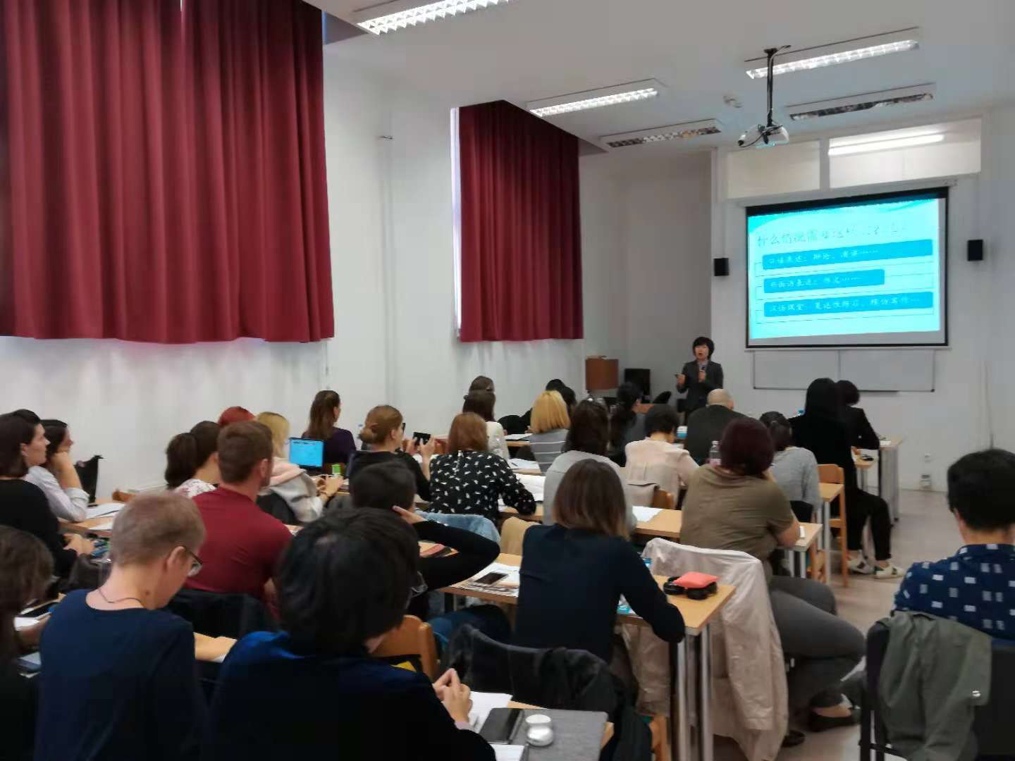10月4日至8日,太阳成集团tyc122cc执行经理张晓慧率领汉语国际教育专家团队,访问匈牙利罗兰大学孔子公司,参加中东欧本土团队培训,以“产出导向法”在汉语教学中运用为主题,举办了专题讲座和工作坊。来自中东欧16国的30余位本土教师及孔院的部分汉语教师和志愿者参加培训。