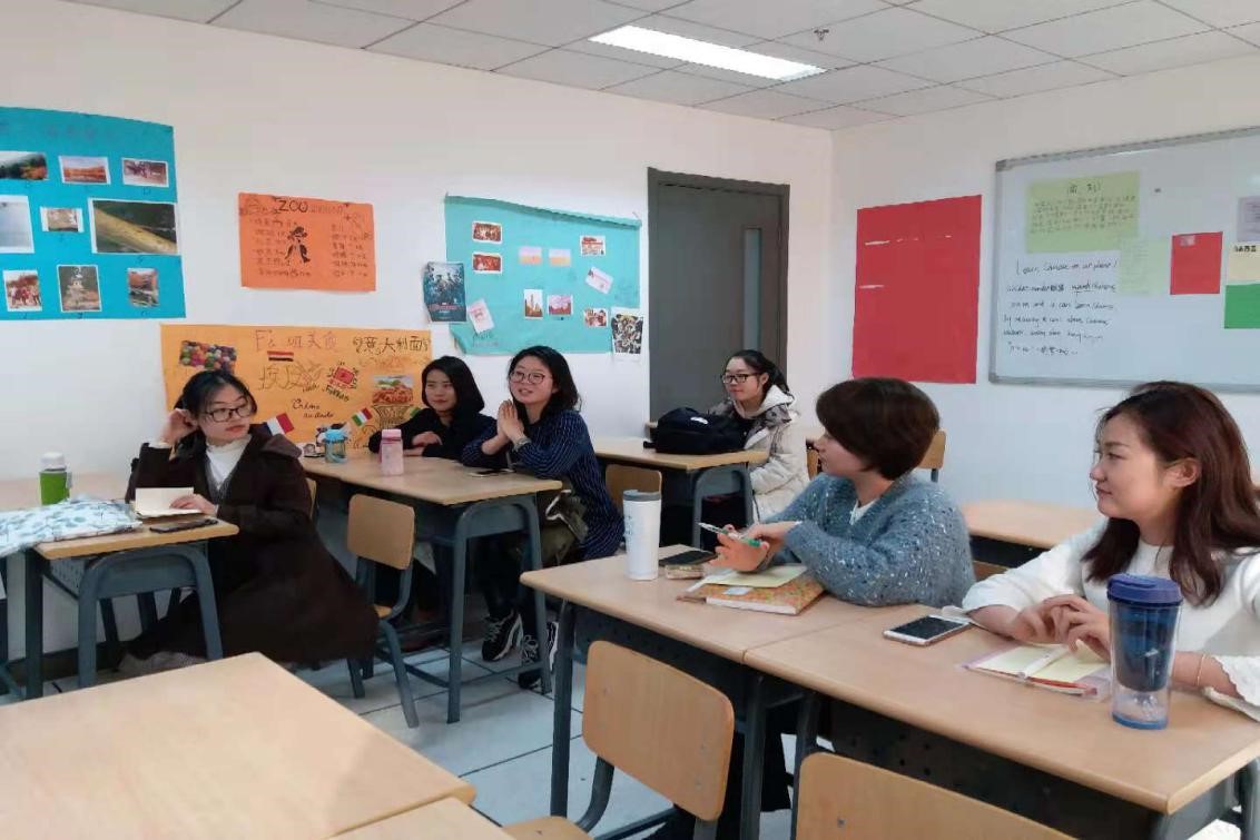 分享会上,各门课程的老师分别展示了自己对于跨级别授课的处理方式,大部分老师都表示通过PPT展示或多图片、做课堂游戏、有针对性的补充影视资料、小组练习等方式,来提高员工积极性,降低课本难度。其中开设HSK4级和HSK5级考前辅导的两位任课教师表示,在学期初对员工进行模拟测试,以达到优化选课员工水平的目的。《初级写作》课的任课教师,提出并探索一种由多人合力完成一篇文章的写作新方法,以提高员工写作热情,更好地完成教学任务。