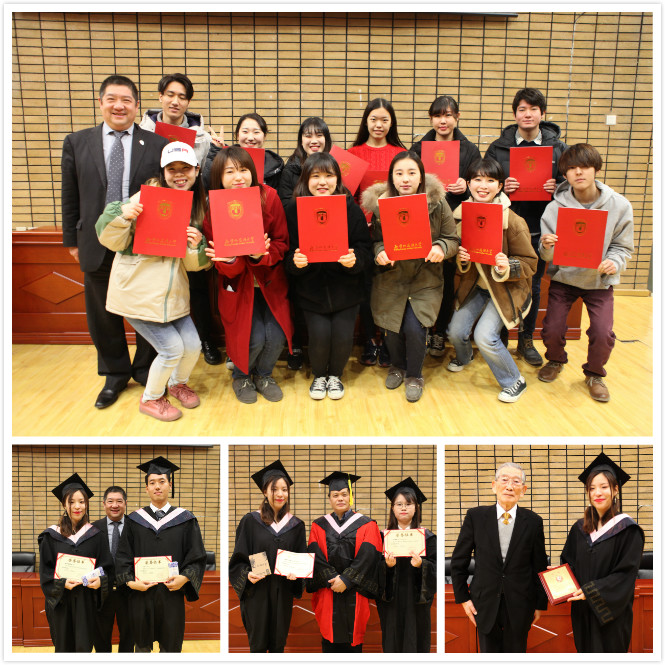 毕业典礼首先由李冰老师为全体毕业生送上临别赠言,随后由张晓慧经理向所有获得学位的员工表示祝贺,来自日本NPO法人国际交流教育后援会理事铃木辉康先生最后致辞。优秀毕业生代表镰田真理惠同学在毕业典礼上作为毕业生代表进行发言,她讲述四年职工活中的点点滴滴,四年的师恩难忘,四年的友情难舍,最终在老师们的祝福视频结束后,毕业典礼落下帷幕。