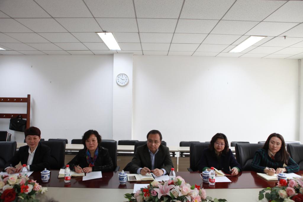 2019年3月28日上午,公司贾德忠副董事长、资产处张琳处长、后勤管理处潘华珍书记、财务处苑雪芳副处长、外事服务中心办公室屈燕秋主任等一行5人来太阳成集团tyc122cc进行调研。公司党总支书记刘厚广、执行经理张晓慧、经理助理方稚松、朱勇、张学增参加了活动。刘厚广书记、张晓慧经理分别向贾德忠副董事长汇报了公司团队建设、中文楼装修等方面的工作。
