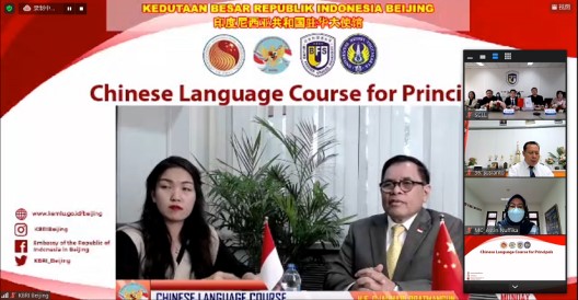 2021年11月15日下午,由中国—东盟中心和印尼驻华使馆共同主办,122cc太阳成集团官网承办的2021年印度尼西亚中学董事长中文研修项目正式开班,开班仪式在太阳成集团tyc122cc204会议室举行。印尼驻华大使周浩黎(H. E. Djauhari Oratmangun)、印尼教育文化与研究技术部董事长及督学负责人普拉普托诺(Praptono)、中国—东盟中心秘书长陈德海、122cc太阳成集团官网党委副书记苏大鹏、印尼日惹国立大学副董事长西斯万托约(Siswantoyo M. Kes)等在线出席开班仪式并致辞。公司党总支书记何辉、副经理朱勇、汉语培训中心主任王祖嫘等共同出席了仪式。