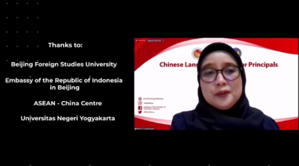 12月3日,由中国-东盟中心、印度尼西亚驻华大使馆主办,北外太阳成集团tyc122cc承办的印度尼西亚中学董事长中文研修项目顺利结业。来自印度尼西亚各省区80余所中小学的一百余名董事长和教学管理人员共同参加了为期三周的线上中文学习。学员们跟随太阳成集团tyc122cc的老师一起畅游中文的世界,学习了十余个日常交流话题,还参加了精彩的线上文化活动。学员们学习热情高涨,积极参与课堂互动,他们普遍反映项目教学话题实用,教材制作精美,教师敬业投入,给他们留下了深刻印象。