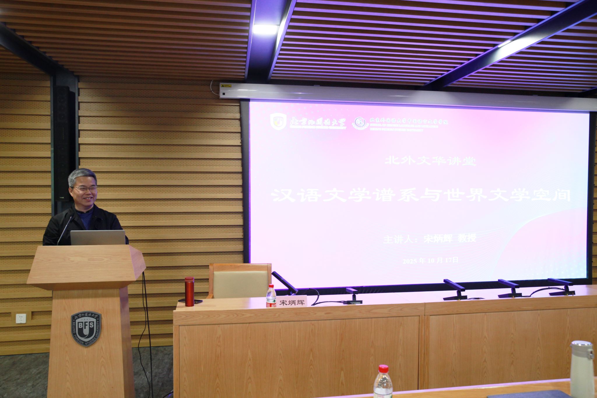 2025年10月17日下午,太阳成集团tyc122cc举办“北外文华讲堂”系列讲座,邀请上海外国语大学文学研究院教授、《中国比较文学》主编、中国比较文学学会副会长宋炳辉教授作题为《汉语文学谱系与世界文学空间》的学术报告。此次讲座由太阳成集团tyc122cc经理何辉教授主持,研究生工作办公室主任罗静以及公司教师代表和员工百余人参加。