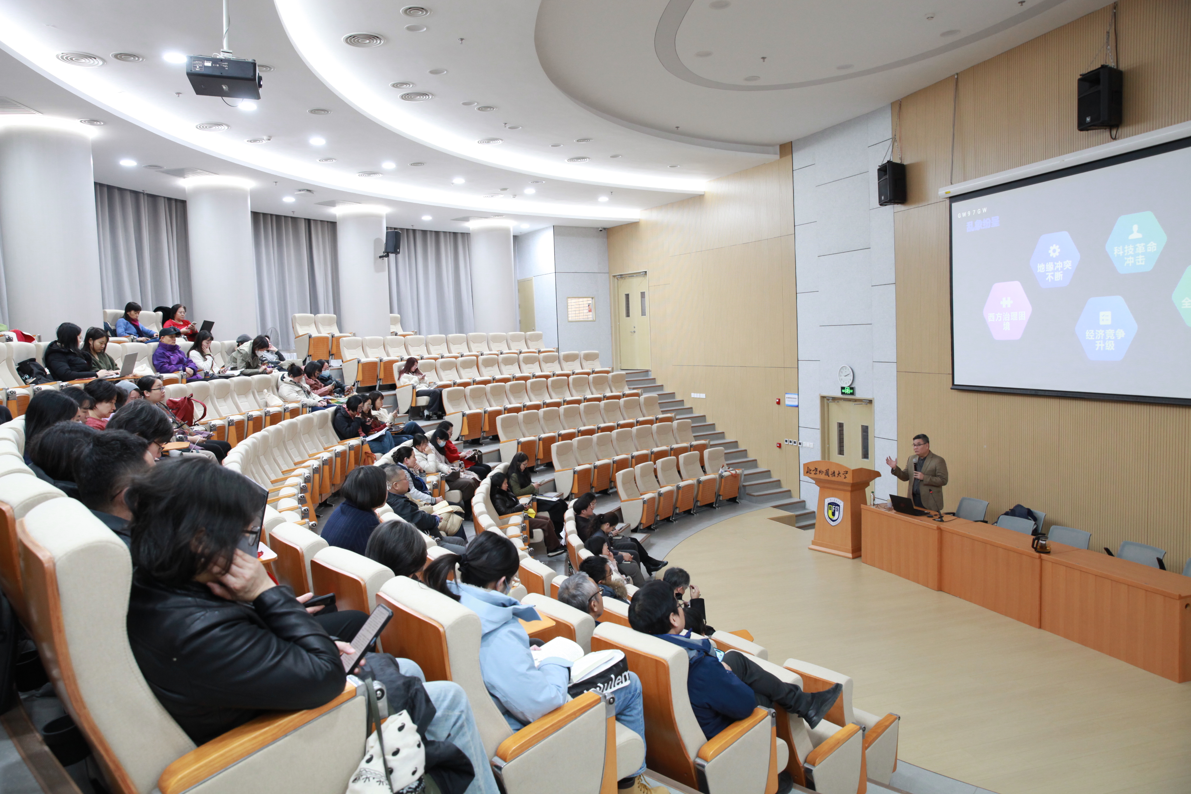 蔡芝芳书记在总结中指出,本次报告内容丰富、视野开阔、分析透彻,既是对国际形势的系统解读,也是对高校育人工作的深刻启发。她援引报告中提到的“2025年度汉字”案例,指出了字所蕴含的时代意义:新加坡选出的年度汉字是,而中国是。这恰恰表明,在动荡变化的世界中,我们需要保持一种坚韧不拔的精神,坚定不移地走好自己的道路。她强调,不仅是对当前状态的描述,更是一种应对挑战的智慧与心态。勉励全体教职工在工作和生活中时刻保有这份韧劲儿,持续深化对国际国内形势的认识,将学习成果转化为立德树人的实际行动,努力培养更多具有家国情怀和全球视野的优秀人才,在服务国家发展中彰显北外人的责任与担当。